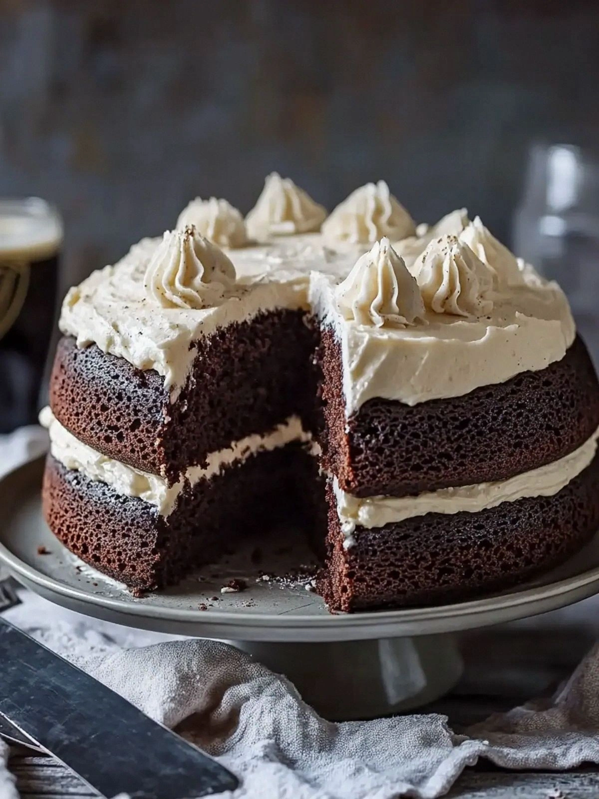 Picture yourself pulling this out of the oven, the whole kitchen smelling incredible, and seeing the first slice slide out of the pan with a golden crust that cracks like thin ice when you press it. The batter is glossy and thick, yet it sinks into the pan with the confidence of a seasoned chef. Inside, the Guinness and sour cream mingle to create a moist interior that’s almost too good to be true. The frosting, a silky blend of double cream and full‑fat cheese, coats the cake like a velvet blanket, giving it a richness that’s impossible to resist. If you’ve ever struggled with a cake that’s too dry or too sweet, you’re not alone — and I’ve got the fix.