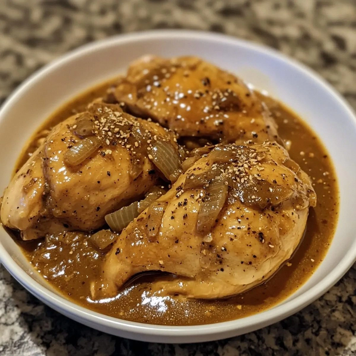 When you first open the crockpot, the steam curls like a fragrant mist, and the onions release a caramelized sweetness that coats the air. The sound of the slow cooker ticking is like a lullaby, and the gentle hiss of the liquid simmering is music to any cook’s ears. The sight of the golden broth, thickened by a whisper of flour, is a promise of comfort. The texture of the chicken—tender, yet still holding a slight bite—makes you wonder how it survived the heat. The taste, a marriage of savory, sweet, and herbaceous notes, feels like a warm hug in a bowl. I swear, that sizzle when it hits the pan? Absolute perfection.
