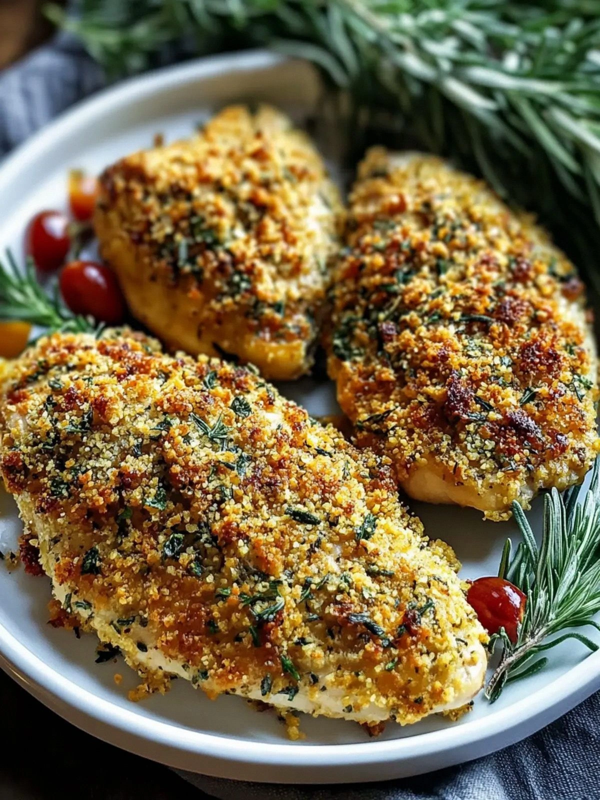 Now we need to ensure we include Picture this: I was in a frantic rush to host a last‑minute dinner, and the kitchen felt like a battlefield. I had a pile of boneless chicken breasts, a handful of herbs, and a recipe that promised “crisp and juicy” but had never lived up to the hype. The first time I tried a similar crusted chicken, the result was soggy and flavorless, a culinary crime that left me nursing a ruined dinner and a bruised ego. I swore that I would find a way to turn that disappointment into a triumphant, golden‑brown masterpiece. I experimented for hours, tweaking ratios and techniques, until I discovered a method that consistently delivered a crisp exterior and a juicy interior. This is the story behind the dish you’re about to learn, and it’s a tale of persistence and flavor triumph. Now, imagine the aroma of fresh thyme and rosemary wafting through the air, the sound of a sizzling pan, and the sight of a golden crust forming under a radiant oven lamp. The texture is a delicate dance between a crunchy exterior that cracks like brittle ice and a moist interior that practically melts in your mouth. The taste is an orchestra of savory herbs, a subtle pepper kick, and a hint of parmesan that lingers long after the last bite. The feel—cool on your fingers as you lift the chicken, warm and comforting as it sits on your plate—makes the whole experience almost tactile. Even the first bite sends a satisfying crackle of crust that echoes in your ears. The aroma that follows is enough to make the entire house smell like a gourmet kitchen. This version is the ultimate version of herb‑crusted baked chicken because it eliminates the common pitfalls that plague most recipes. Instead of a bland breadcrumb coating, I use a blend of fresh breadcrumbs and grated parmesan that adds depth and a subtle nutty flavor. The secret is the dry‑toasting of the breadcrumbs before adding the herbs, which creates a crisp, golden crust that locks in juices. I also incorporate a small amount of olive oil into the coating, giving the chicken a buttery sheen that turns every bite into a savory delight. The result? A dish that is hands down the best version you'll ever make at home. It’s a simple tweak that transforms ordinary chicken into a show‑stopper. I’ll also reveal a trick that most people overlook: a quick brine that infuses the chicken with moisture and flavor before the coating even touches it. This small step ensures that each breast stays juicy, even after the oven’s intense heat. I dare you to taste this and not go back for seconds. Picture yourself pulling this out of the oven, the whole kitchen smelling incredible, and serving a plate that looks as good as it tastes. The moment you take a bite, you’ll feel the contrast of crisp and tender, a revelation that makes you question every other chicken dish you’ve tried. Let me walk you through every single step — by the end, you'll wonder how you ever made it any other way. The olive oil, salt, black pepper, garlic powder, onion powder, thyme, rosemary, and parsley form the aromatic foundation of this dish. Each herb contributes a distinct note: thyme offers earthiness, rosemary brings piney sharpness, and parsley adds a bright, grassy finish. The garlic and onion powders give depth without the need for fresh aromatics, making the coating both simple and complex. If you skip any of these, the crust will taste flat and the chicken will lack the signature herbal punch. Fresh breadcrumbs and grated parmesan are the dynamic duo that delivers that coveted crunch. Breadcrumbs absorb the olive oil and bind with the herbs, creating a firm yet airy coating. Parmesan injects a subtle nutty flavor and helps the crumbs adhere, preventing them from falling off during baking. If you were to replace breadcrumbs with panko, the crust would become extra crisp, but you would lose the traditional texture. The quick brine is the secret weapon that keeps the chicken moist. Dissolving a tablespoon of salt in a cup of water and letting the breasts soak for ten minutes hydrates the meat and enhances flavor. The brine also helps the coating stick better, ensuring a uniform crust. If you skip the brine, the chicken may dry out during the high‑heat bake. The final coating step is where all the flavors converge. Pressing the herb mixture onto each breast, then dredging in the breadcrumb‑parmesan blend, creates an even, thick shell. The olive oil in the coating adds a glossy sheen and contributes to the golden color. If you were to use a dry coating only, the crust would be uneven and less flavorful. Everything's prepped? Good. Let's get into the real action... That's it — you did it. But hold on, I've got a few more tricks that'll take this to another level... Many cooks think 400°F is enough, but a higher temperature of 425°F locks in juices faster and creates a crisper crust. The oven’s heat should be steady; preheating for at least 15 minutes guarantees that the chicken starts cooking immediately. If you’re using a convection setting, lower the temperature by 25°F to avoid over‑browning. As the chicken bakes, the aroma of herbs and parmesan will rise, signaling that the crust is golden. If the smell is faint, give it a few more minutes. Trust your nose; it’s the most reliable indicator of doneness. Resting the chicken after baking allows the juices to redistribute, preventing them from spilling out when you cut. A quick 5‑minute pause also lets the crust firm up, giving you a crunch that lasts. Skipping this step may result in a soggy bite. A heavy‑bottomed baking sheet or a cast‑iron skillet distributes heat evenly, ensuring the chicken cooks uniformly. If you use a flimsy sheet, the bottom may scorch while the top remains underdone. Flip the chicken halfway through baking if you notice uneven browning. This simple maneuver guarantees a golden exterior on all sides and a juicy interior. Place a sheet of parchment pap