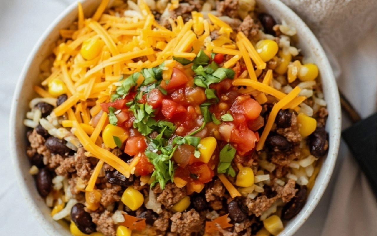 The lean ground beef is the foundation of this bowl. It’s the protein that carries the taco seasoning and provides a savory backbone. If you skip it, the dish becomes a dry, unremarkable mix of rice and beans. For an extra punch, brown the beef with a splash of soy sauce or Worcestershire before adding the seasoning.